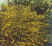 arbusto de 1-2 m de altura, erecto, con ramas verdes y lisas; hojas caducas, alternas, dentadas, de color verde brillante, oval lanceoladas; flores solitarias pentámeras de un hermoso color amarillo vivo. Las flores, en las formas típicas, son relativamente pequeñas, pero alcanzan mayores dimensiones en las variedades provistas de flores dobles |