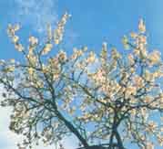 árbol de 8-10 m de altura (pero generalmente de 3-6 m), ramificado, con hojas lanceoladas, acuminadas, fina y regularmente dentadas. Además de ser un buen árbol frutal, el almendro se adapta muy bien para ser cultivado como especie de flor por la abundancia y belleza de su floración; en efecto, las flores, blancas llenas o dobles, a veces jaspeadas o rosadas, aparecen ya en el árbol a finales de invierno |