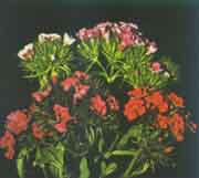la forma típica de esta especie es perenne y está caracterizada por la presencia de tallos erectos de medio metro de altura al menos, glabros, cuadrangulares en su porción superior; flores oval lanceoladas o lanceoladas, poco pecioladas, denticuladas; en ramilletes con pétalos dentlculados, externamente de color rojo manchado de blanco, pero también se dan otros colores en variedades que pueden presentar flores dobles: rosa, rojo, violáceo, 111 a, etc |
