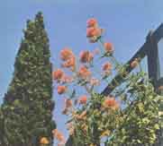 planta perenne con tallos provistos de abundantes hojas, de un metro de altura como máximo, hojas oval -acumi nadas enteras o irregularmente dentadas; flores de color rosa (o bien rojo o blanco), algo perfumadas y reunidas en -un ancho corimbo |