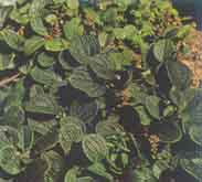 sufrútice con tallos rastreros, ramas de color rojo oscuro; hojas elíptico-ovales, muy pecioladas, de color verde oscuro por la cara superior y granujientas, glaucas y reticuladas por debajo; flores insignificantes en amentos cilíndricos pedunculados |