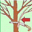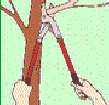 Las tijeras de talar: las ramas un poco mas gruesas (hasta 2,5 cm. de diámetro) se cortan con la ayuda de unas tijeras de talar. Colóquenlas en la base de la rama a suprimir, contra el tronco o la rama gruesa de la que surge, y corten en un solo movimiento cerrando las tijeras.