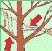 Horcaduras en "U": Las ramas se tienen que repartir regularmente alrededor del tronco, y alejarse de el formando una « U ». Las que se dirigen hacia el tronco, se entrelazan o se frotan unas contra otras han de ser eliminadas, así como los «chupones » (que se desarrollan sobre el tronco o una rama sin ramificarse).