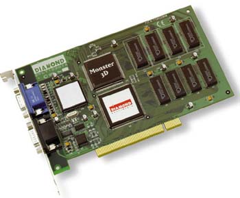 La aceleracion 3D en la PC no era algo estandarizado para nada, y el consumidor promedio no tenia acceso a esas cosas. Todo cambio drasticamente cuando 3dfx, una gloriosa compañia que ahora ya no existe, lanzo al mercado su chip Voodoo Graphics. La famosa voodoo 1, era una placa que se conectaba a un slot PCI, y por medio de un cable link se unia con la placa de video que el usuario poseia, otorgandole al sistema la capacidad de manejar graficos acelerados en 3D. Las versiones mas comunes en placa de este chip, como la conocida "Monster 3D" de Diamond, venian con unos 4 mb de RAM, aunque tambien hubo versiones de 6 y 8 mb. Bilinear filtering, bump mapping, antialiasing, resoluciones de 640x480 en 16 bits [65.000 colores en pantalla].. Ver el GLQuake corriendo en una de esas placas en 1996 era algo increible para la epoca. Una placa basada en Voodoo Graphics costaba unos 200 dolares en USA.
