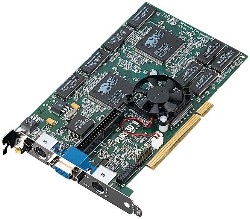 Geforce2 ULTRA 3dfx ya no pudo recuperarse, y poco despues entro en quiebra y fue comprada nada menos que por NVIDIA, que se quedo con toda su tecnologia, y desmantelo la empresa. Triste final para la gloriosa 3dfx, que comenzo todo lo que conocemos hoy en dia. NVIDIA continuo con sus ciclos de alrrededor de 6 meses en el lanzamiento de chipsets, y todo parecia indicar que se venia una negra etapa monopolica en el mercado del video 3D. En ese mismo año [2000], la empresa canadiense ATi, la mayor fabricante de placas de video del mundo, por fin lanzo un producto decente, la ATi Radeon. Con innumerables versiones diferentes, en definitiva la Radeon tenia un rendimiento un poco superior o similar a la Geforce 256, pero no le hacia sombra a la poderosa GTS. Aunque tenia la gran calidad de imagen y de producto que caracteriza a ATi, y fue un producto bastante exitoso. NVIDIA por su parte lanzo la version economica de la Geforce2, la Geforce2 MX, que tenia un rendimiento similar al de la Geforce 256, solo que con algunas caracteristicas nuevas. Luego lanzo la version ULTRA de la GTS, con un rendimiento realmente impresionante. La empresa Hercules hizo su intento con su chip Kyro2, muy economico y con una tecnologia novedosa de ahorro de procesamiento. Tenia un rendimiento similiar al de una Geforce2 mx, y era muy barato, pero lamentablemente no tuvo mucha aceptacion, y fracaso.