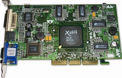 Geforce4 Ti4200 La linea MX, en cambio, no tenia nada que ver con las Ti, y realmente no merecian ser llamadas "Geforce4". Su tecnologia en verdad se asemejaba mas a una Geforce2 que a una Geforce3/4, y ni siquiera soportaban DirectX8, o sea que muchos de los nuevos juegos no funcionaban bien en estas placas. Tenian un rendimiento similar al de una Geforce2 GTS/ULTRA. Salieron en 3 versiones tambien: MX420, MX440, y MX460. La empresa taiwanesa SiS, intento por primera vez lanzar al mercado un chip decente, y lo hizo con su linea Xabre, en 3 versiones: Xabre200, Xabre400, y Xabre600. En versiones de 32 y 64mb DDR. Eran realmente buenas placas, con un rendimiento similar e incluso superior al de una Geforce4 MX, y ademas disponian de soporte para DX8. Y eran baratas. Pero la pobre calidad de los drivers, hicieron que no tuviera mucho exito en el mercado. Una lastima.