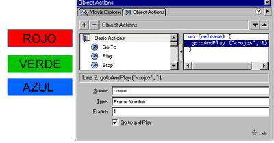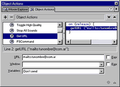 AccionesAhora nos vamos a dedicar a darle las acciones correspondientes a los botones, ya conocemos la ventana de acciones y por ahora utilizaremos la básicas y otras más, más adelante.Vayamos al botón rojo y lo seleccionamos, en la ventana de acciones, hacemos click en gotoAndPlay, en escema colocamos entre <> el nombre de la escena al cual queremos que vaya, ¿cuál es?, la roja, y le damos tilde en go to and Play para que si hay animación en esa escena, la ejecute. ![]() Si presionamos en la línea on, nos va a mostrar los eventos del mouse, entonces ahí elegimos release (significa que la persona hizo click y soltó), entonces ahí asegura que sí quiere ir a ese lugar donde lo va a llevar el botón. Observemos entonces qué sucede cuando probamos la película: presionen el botón rojo y verán que van a la escena roja. Lo lograron ¡Felicitaciones!, entonces lo que van a realizar es ahora que todos los botones dirijan a las escenas correspondientes. Ahora nos toca pensar qué hacemos con el Home. Espero que se hayan dado cuenta qué es lo que hay que hacer, para que desde las escenas vayamos a la escena home. Email: buscamos en las acciones básicas, Get Url, y como demuestra la imágen de abajo, escribiremos sólo lo siguiente: mailto:tunombre@com.ar (obviamente este es un ejemplo) es decir, el email original al cual va dirigido el email. ![]() De esta manera ya podemos comenzar a pensar un site y ahora nos dedicaremos a agregar ingredientes a esta receta. Movie ClipsEs un movimiento creado pero dentro de este símbolo, entonces en nuestra línea de tiempo sólo ocupará un frame, aunque dentro de este elemento sea un movimiento de muchos frames, ver ejemplo:![]() ahora veremos dentro del movie clip: ![]() Es decir, si dentro de esta nuestra escena, y no dentro del mc (movie clip) o clip de película colocamos un stop, nuestro pececito seguirá nadando sin parar. Si quisiese que además nadara una vez y pare, DENTRO DEL MOVIE CLIP o CLIP DE PELICULA pondría OTRO STOP.