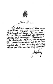 Es nuestro "Catecismo de Doctrina Peronista". No puede ni debe faltar en la casa ni en la inteligencia ni en el corazón de ningún peronista que quiera sentirse digno de ser peronista auténtico... ¡de alma ...!