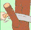 El aserrado: después siérrenla por arriba, en dirección al corte. Si es muy pesada, es preferible cortarla primero a 30 cm. del tronco, y de nuevo a ras del tronco, lo que podrán hacer con una sierra de mano o una tronzadora.