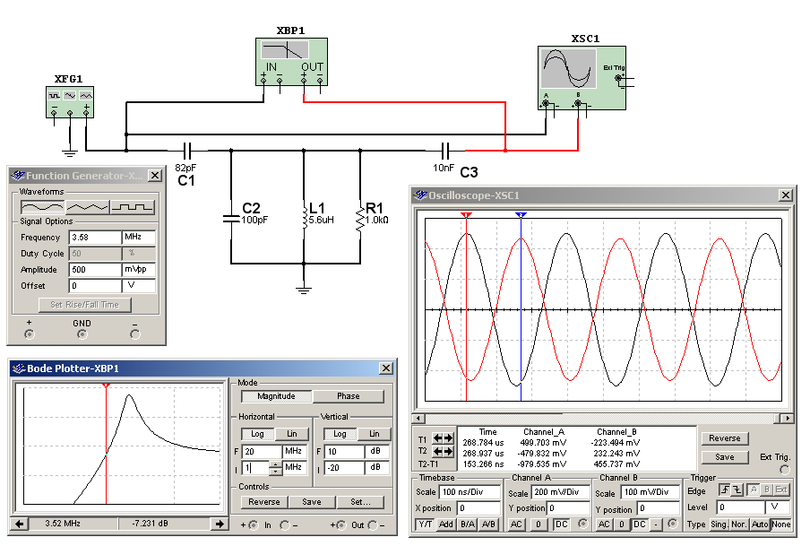Yo aconsejo a mis alumnos que para analizar el funcionamiento de los filtros utilicen las ventajas que nos dan los laboratorios virtuales y en caso de dudas generen fallas virtuales para analizar el funcionamiento del circuito. En nuestro caso armamos el filtro de entrada para analizar los niveles de señal del TDA3562.