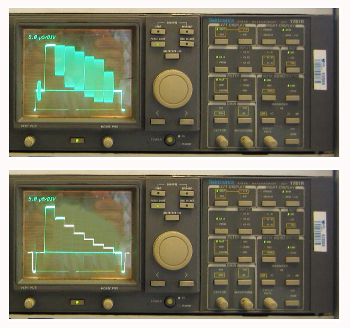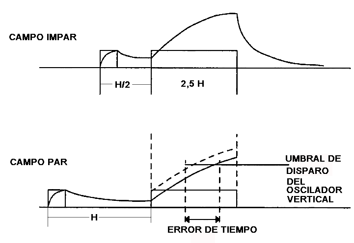 Todo parecería perfecto pero en realidad los campos pares e impares no son iguales. El ultimo pulso de precualización parece corrido ½ H en un campo con respecto al otro y esto produce un error de sincronización vertical que en la época de los TV de ByN en los que el foco no era muy bueno, pasaba desapercibido y se lo aceptaba.