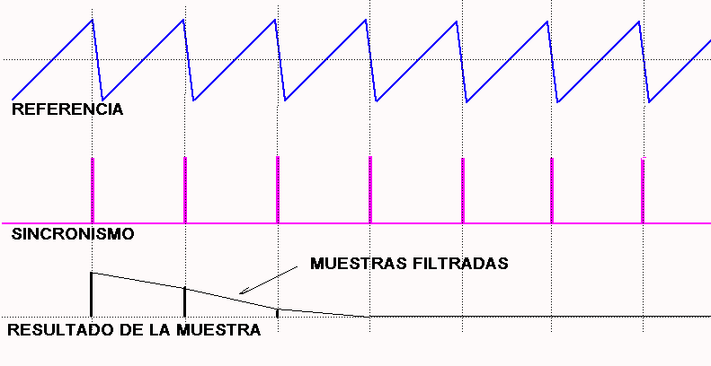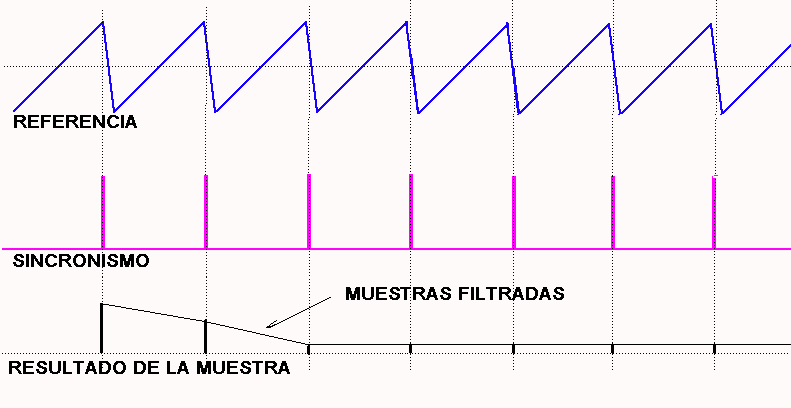 El error de fase constante suele ser lo suficientemente pequeño como para que no exista ninguna manifestación evidente en la pantalla del TV. En realidad, si existe una que es muy lógica, y se aprecia claramente si cambiamos la frecuencia del VCO mientras observamos la pantalla; la imagen se mueve de derecha a izquierda y viceversa mientras se corre el ajuste, pero permanece estable si no se mueve el preset de frecuencia horizontal. Esta falla se conoce como falta de fase horizontal. Parecería que ya están explicados todos los casos posibles de funcionamiento de un CAFase, pero no es así. Aun falta el caso mas general que es cuando el pulso de sincronismo cae fuera del retrasado y la frecuencia libre esta corrida. A este problema se lo llama reenganche del horizontal y hay que analizarlo muy bien para entender como hace el TV para enganchar. El CAFase corrige cuando el pulso de sincronismo cae dentro del periodo de retrazado. En nuestro caso significa sobre la pendiente descendiente del diente de sierra. Allí el CAFase tiende a enganchar cambiando la frecuencia con el signo correcto (patea a favor). Pero cuando el pulso de sincronismo cae en la pendiente ascendente el CAFase tiende a desenganchar cambiando la frecuencia con el signo incorrecto (patea en contra). ¿Por qué engancha entonces?Porque la pendiente descendente es mayor que la pendiente ascendente y el por lo tanto el CAFase tiene mayor ganancia durante el retrazado que durante el trazado. La salida del CAFase no es una continua sino una alterna mientras el oscilador pasa de desenganchado a enganchado. Pero esa alterna tiene semiciclos con mayor valor medio durante el pasaje del pulso de sincronismo por la zona de retrazado que durante el pasaje por la zona de trazado. Es decir que realmente hay una corrección positiva que termina enganchando al sistema. Dibujar el oscilograma de este caso es muy complicado por lo tanto lo dejamos hasta que tengamos un circuito de oscilador y CAFase simulado y podamos observar los oscilogramas de la simulación. Inclusive el alumno ya debe estar imaginándose que el filtro anti hunting no es un filtro simple. En efecto son tantas las condiciones en que puede estar funcionando el sistema de CAFase que el filtro anti hunting consta por lo menos de dos capacitores y un resistor y cada componente, en caso de falla, genera su propio problema. ¿Se puede considerar que los pulsos de sincronismo son una muestra estable?En la mayoría de los casos si, pero existen dos excepciones muy importantes.