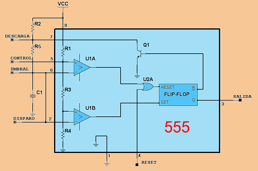 Ud. solo debe colocar le valor de frecuencia y el periodo de actividad y el programa le avisa si se puede resolver con el capacitor C elegido. Si no se puede le da la opción de cambiarlo hasta que se obtenga un resultado adecuado (se ilumina Build Circuit). La salida del circuito se obtiene desde el biestable y es una señal rectangular que, debidamente amplificada por la etapa de salida interna, está en condiciones de operar la siguiente etapa, llamada “excitadora” o “driver horizontal”. Vamos a analizar ahora las diferentes patas del integrado comenzando por la pata de descarga.